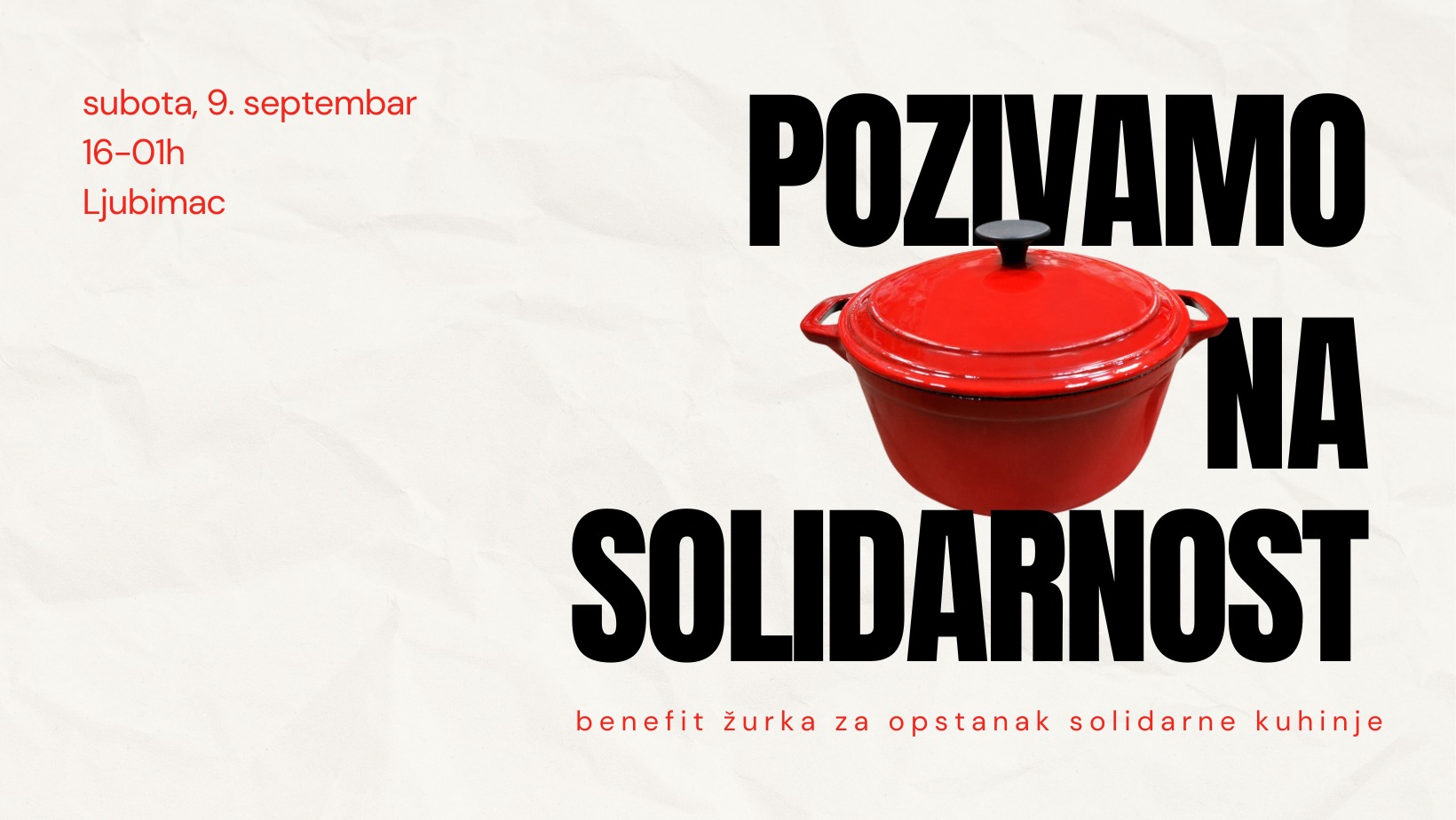 Stoga, Solidarna kuhinja organizuje benefit žurku u subotu, 9. septembra u Ljubimcu (Cetinjska 15), od 16 do 01h, tu će svi zainteresovani moći da doniraju novac i omoguće im da nesmetano nastave da kuvaju. Tako ćete postati deo mreže solidarnosti koja čuva nezavisnost u radu.