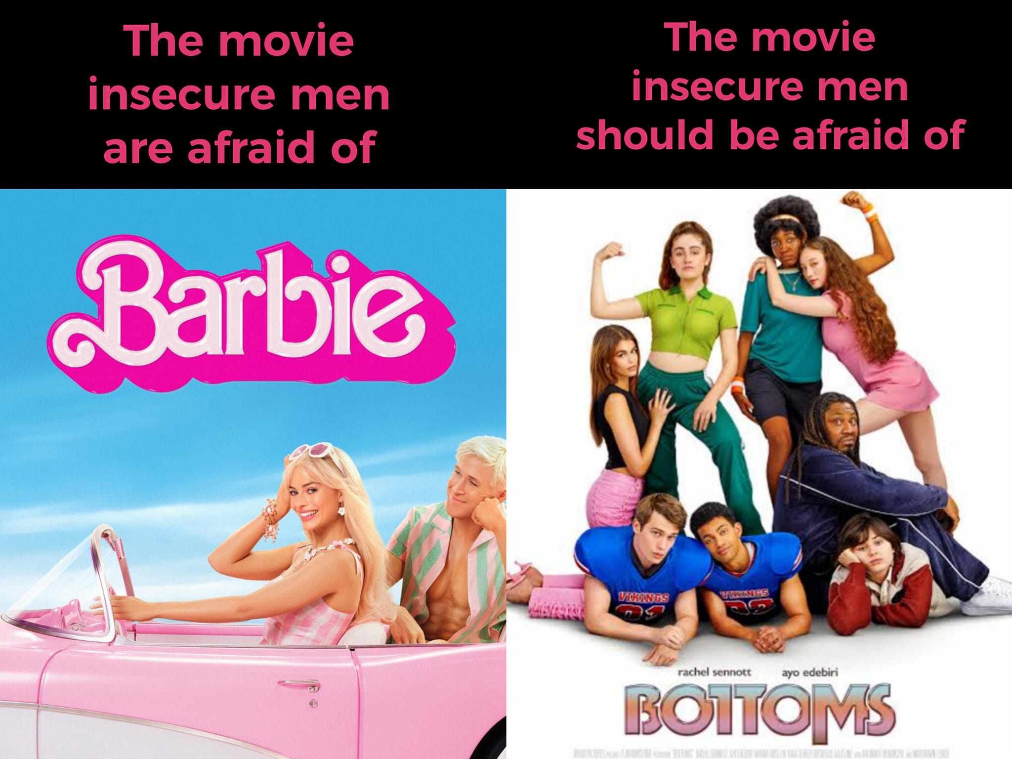 Kao što reče neki mim na interntima, nesigurni muškarci su se plašili filma Barbi, dok u stvari treba da se plaše ovog filma. Ipak, Barbi je svakako bitniji i veći film iz svakog mogućeg aspekta, dok je Bottoms film koji nijednog momenta ne želi da bude nešto što nije, samo tupava (i ovo kažem kao najveći kompliment) tinejdž komedija za pametne gledaoce.