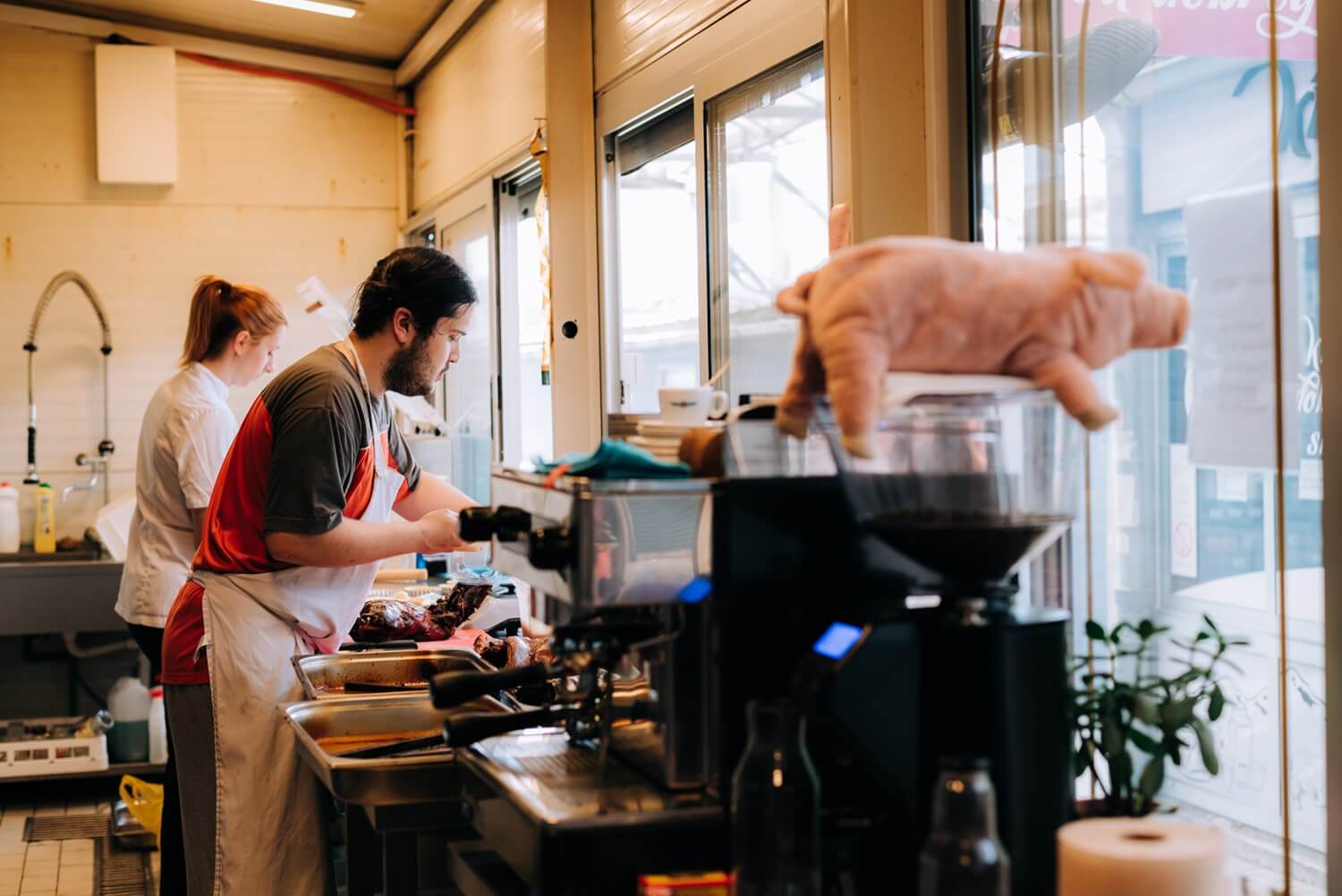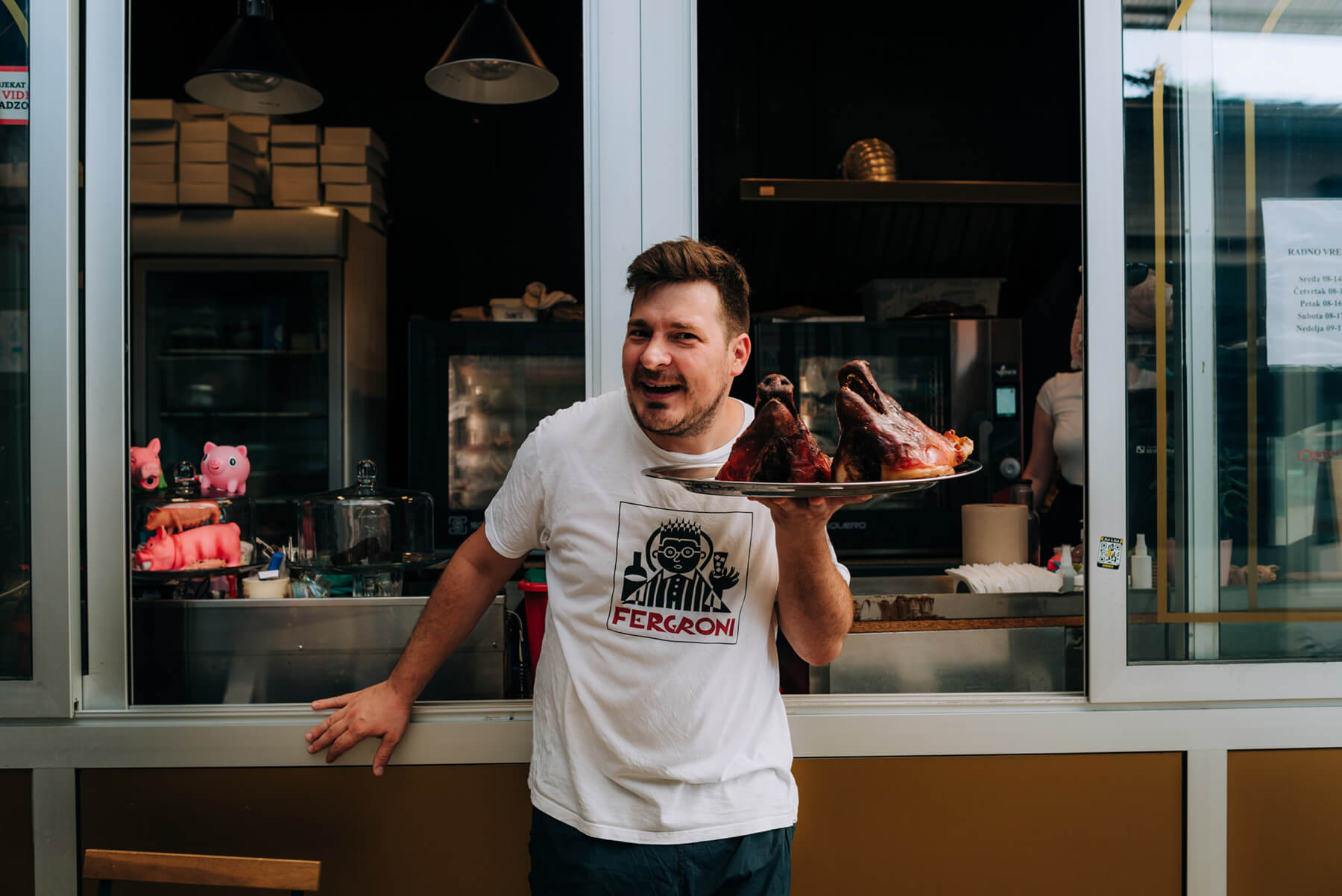 Naš razgovor su često prekidali ljudi koji su dolazili po pečenje, Nikola ih je domaćinski pozdravljao, te smo imali prilike da osetimo i atmosferu koja ovde vlada. Razumljivo je zašto je pijaca bila lokacija na kojoj je ovako nešto trebalo da bude otvoreno. Ipak, Zemunska pijaca je došla igrom slučaja, kako kaže Nikola.