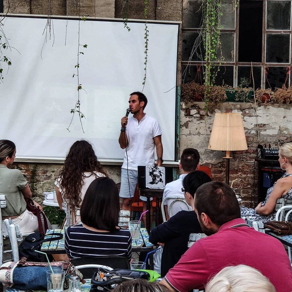 Tako je ovaj mladić koji se bavi digitalnim marketingom, obišao je 47 zemazalja, a bio je i teniski sudija u mečevima Federera i Nadala, pre početka priče o svojim putovanjima, pitao publiku koje su njihove destinacije iz snova i zbog čega, kao i da li smatraju da ljudi s ovih prostora imaju prilike da putuju. Tako se u samom startu otvorila diskusija, koja je trajala tokom cele promocije.