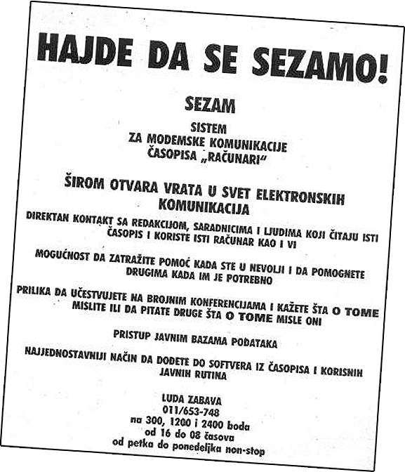 Sezam, as it was originally called, this BBS worked on the principle of message exchange, as the forerunner of the forums. In the first five years, from November 1989 to November 1994, users wrote 394,000 messages or 418 megabytes of text on a variety of topics, ranging from computer to politics, culture, music and others. Sezam users called themselves “Sezamovci” and represented a forerunner of sorts of social networks.