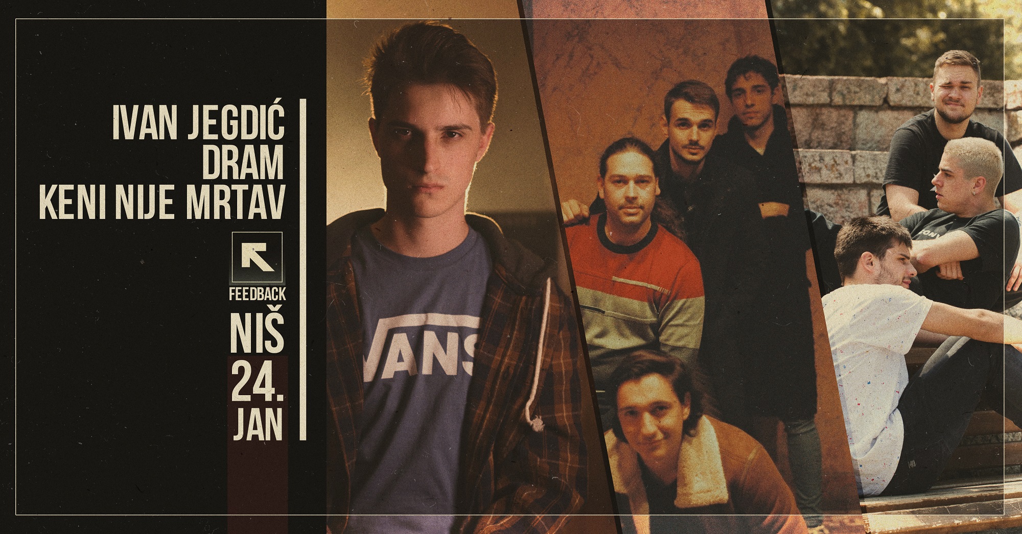 Hešteg indiegas, hešteg boljičovek, hešteg pusticuglas. Ovi slogani ne donose samo običnu svirku tri benda – to je žurka sa tri strava ekipe na bini. Live party sastavljen od indie, pop, etno, trap, punk pesama koje izvode Ivan Jegdić, Dram i Keni Nije Mrtav.