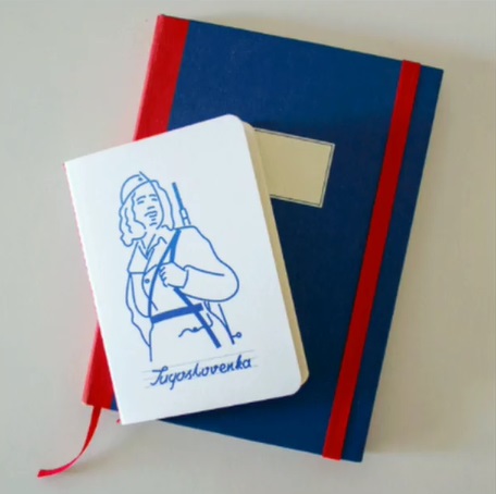 Levo: Yugoteka beležnica inspirisana Dolinom heroja. / Desno: ceger sa stihovima Vlade Divljana.