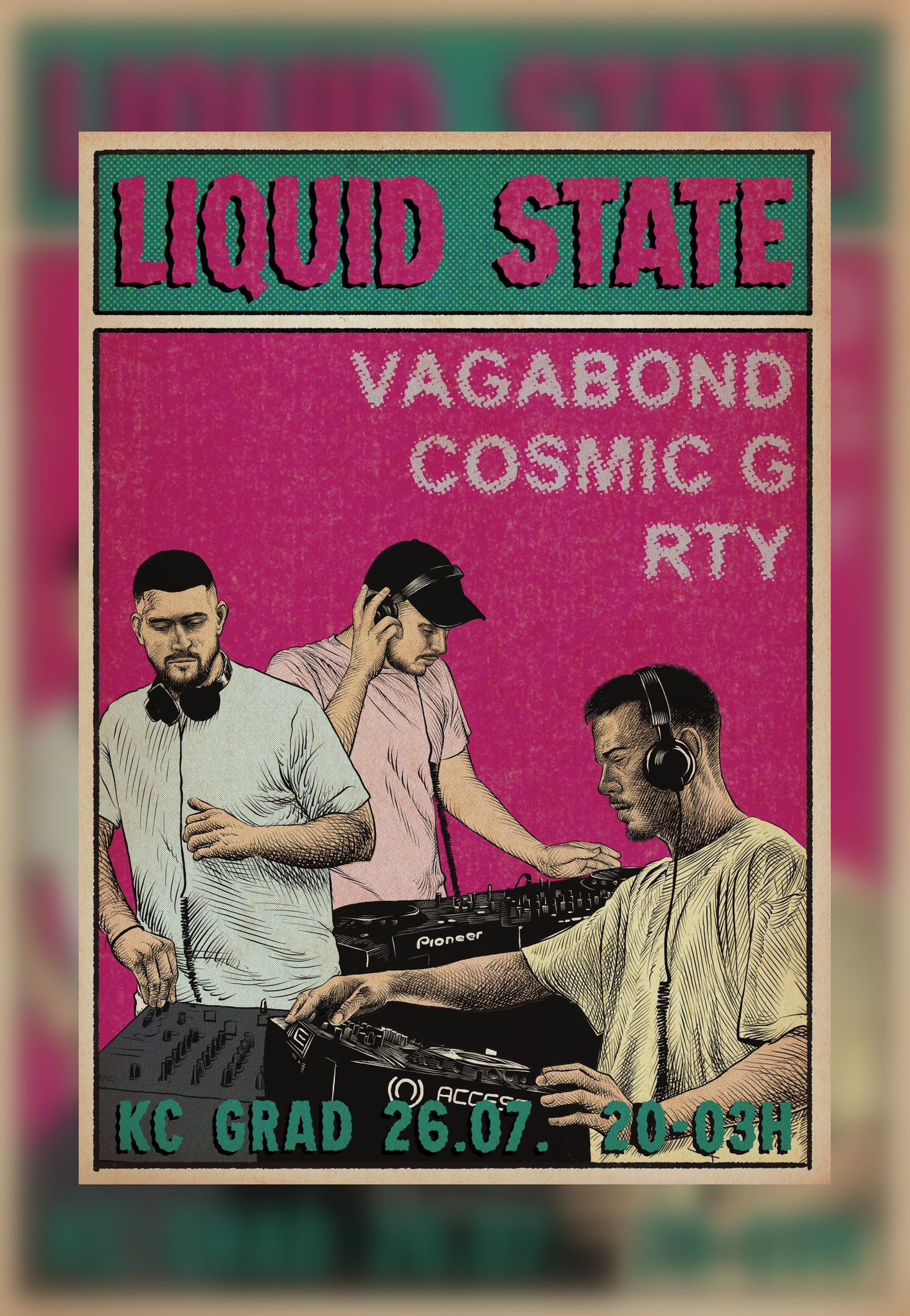 Ovog petka 26. jula, u bašti KC Grada, biće održana žurka na kojoj će muziku vrteti ekipa iz kolektiva Liquid State.
