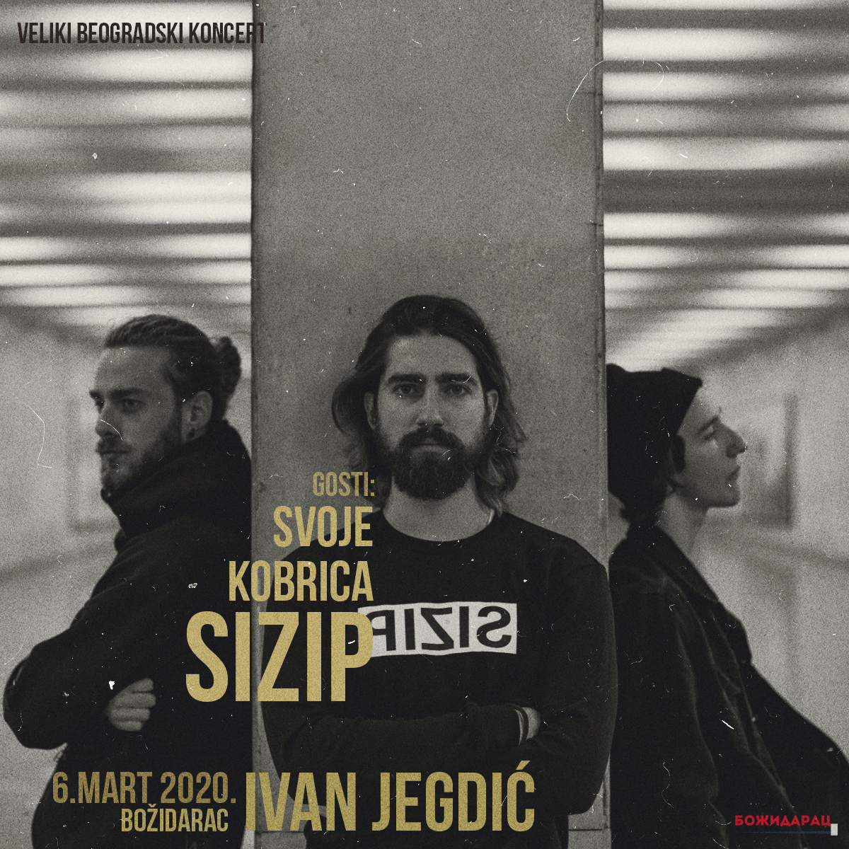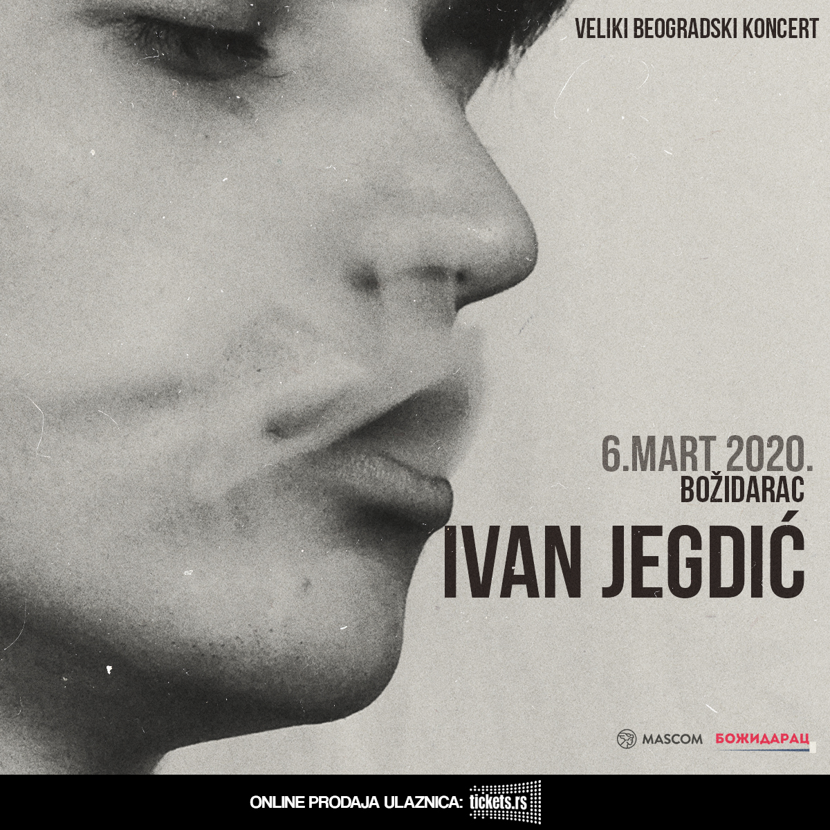 Mladi beogradski autor, Ivan Jegdić, održaće svoj prvi veliki koncert u Beogradu u koncertnoj sali Božidaraca 6.marta 2020. godine. Ivan će nastup održati u pratnji benda sa kojim je već na truneji širom Srbije i regiona. Program večeri popuniće i gosti, mladi harizmatični Svoje iz Bosne i Hercegovine, Kobrica i bend Sizip.