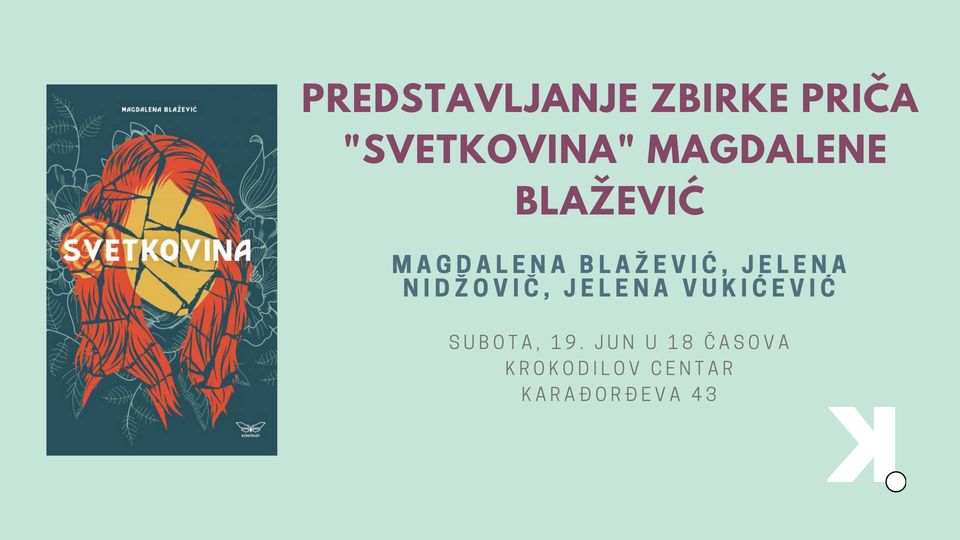 U 18 časova u KROKODILovom Centru biće organizovano predstavljanje zbirke priča „Svetkovina” Magdalene Blažević. O ovom Kontrastovom izdanju iz 2020. godine razgovaraće sama autorka, zajedno sa profesorkom književnosti Jelenom Vukićević i urednicom u Kontrastu, Jelenom Nidžović.