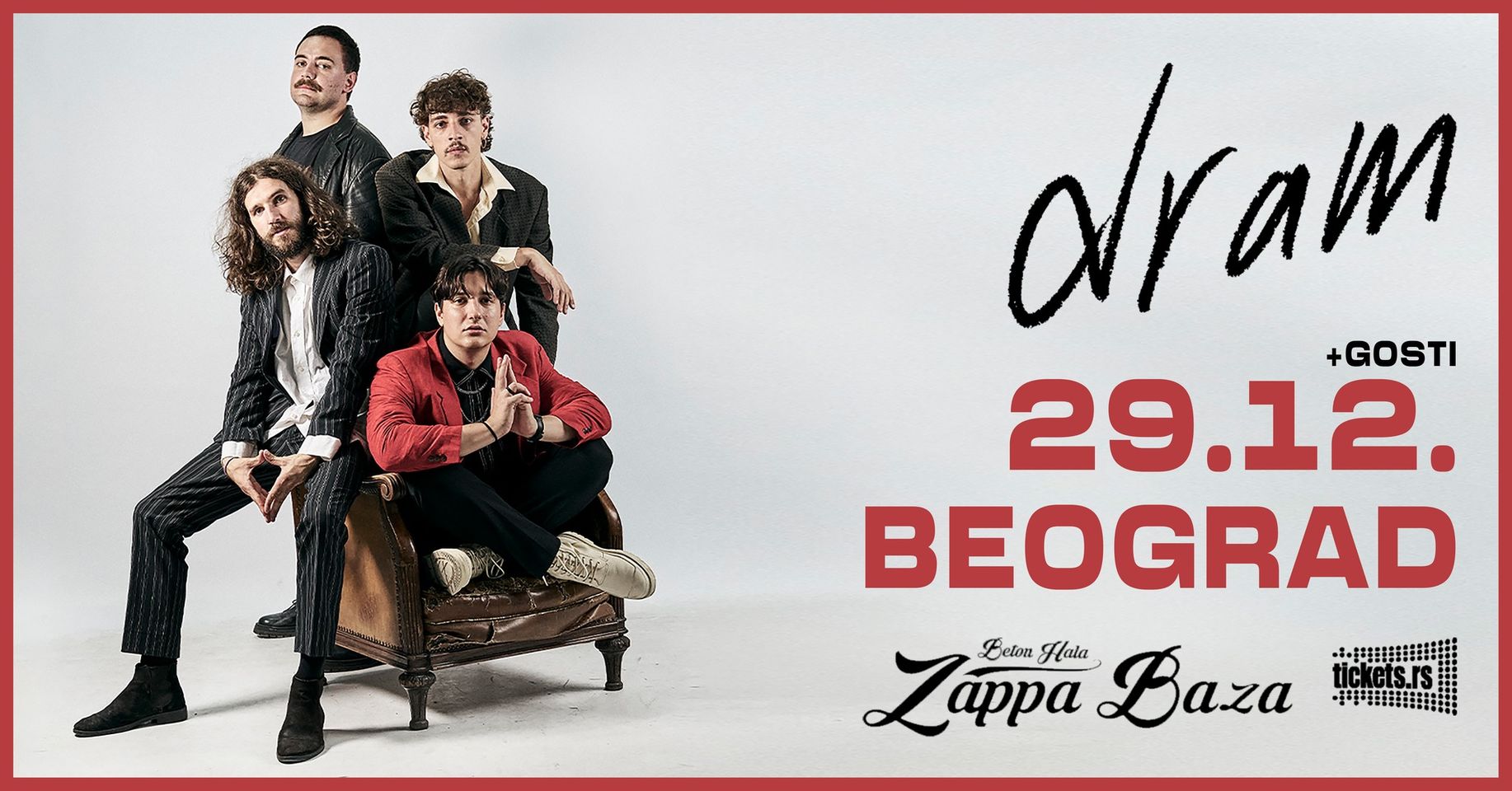dram, popularni beogradski synth indie rock bend održaće veliki koncert u petak, 29. decembra 2023. u beogradskom klubu Zappa Baza.