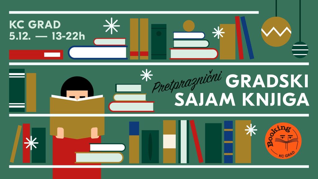 U nedelju, 5. decembra od 13 do 22h u Kulturnom centru Grad će, u okviru programa Booking, biti održan Pretpraznični Gradski sajam knjiga. Posetioci će imati priliku da pred praznike uživaju u sniženim cenama i popustima domaćih izdavačkih kuća, pronađu inspiraciju za poklone i upoznaju se sa, kako starom, tako i aktuelnom književnom produkcijom koje nam domaće IK pripremaju. Očekuju nas i neformalna druženja sa domaćim piscima i pesnicima koji će potpisivati svoje knjige.