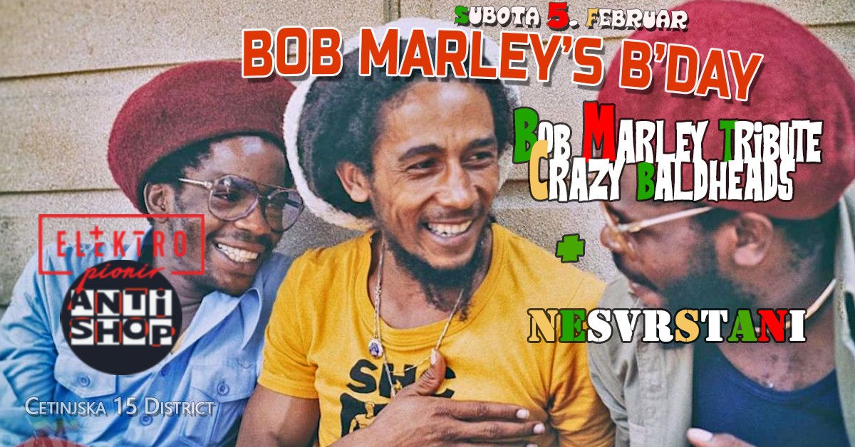 Slavimo rođendan Bob Marley-a najvećeg mirotvorca, pesnika, muzičara, legende reggae muzike u istoriji baš u subotu 5. februara dočekujemo njegov duh kao vitlajemsku zvezdu. Rođendanski praznik reggae kulture prirediće nam Bob Marley’s tribute Crazy Baldheads i kraljevi roots zvuka na Balkanu, sastav Nesvrstani.