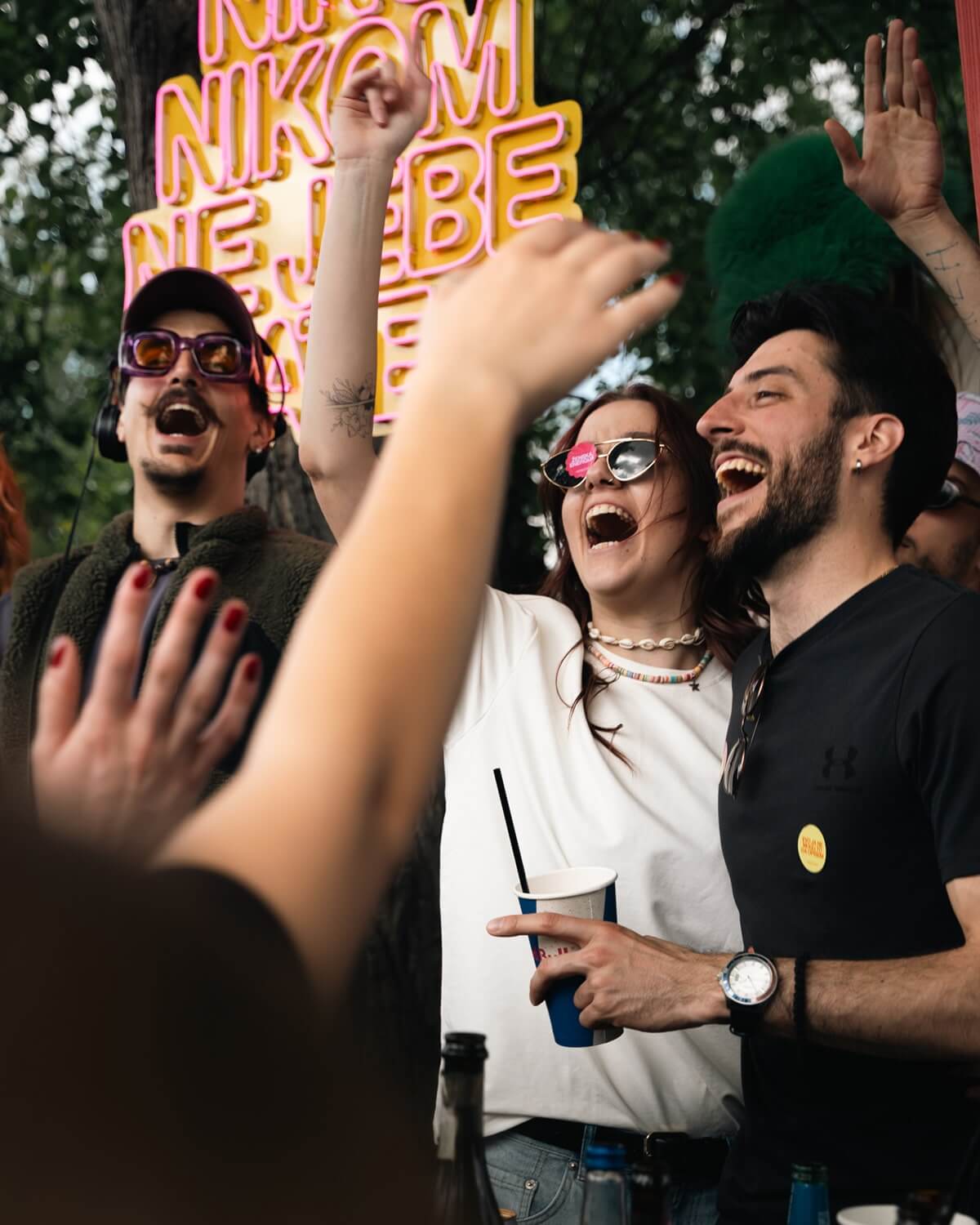 Ljudi koji vide i saznaju za NNNJM, i budu u fazonu da „nekome treba da se j*** mater“ – onda ljudi ovo definitivno nije pravac za vas. Mi to ne radimo. Naša filozofija je jasna: toliko pozitivne energije, toliko osmeha, zagrljaja i čistog ludila – niko nikog ne vređa, niko nikom ne je*e mater. Jer zaista ideja iza NNNJM-a nikad nije bila samo da napravimo neku dobru žurku, već da počnemo da menjamo percepciju koja se često vezuje za partijanje – da okupljamo ljude oko ideje zajedništva, ljubavi i harmonije.