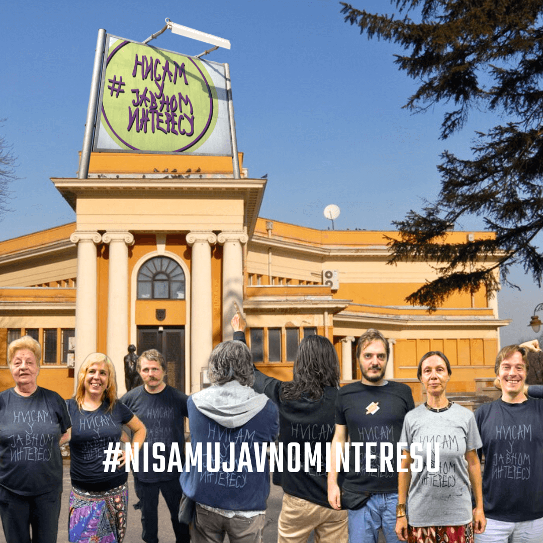 Asocijacija Nezavisna kulturna scena Srbije i Udruženje likovnih umetnika Srbije poziva sve zainteresovane da se priključe javnom događaju „Nisam u javnom interesu” u petak 10. novembra u 17 časova u UP „Cvijeta Zuzorić”.
