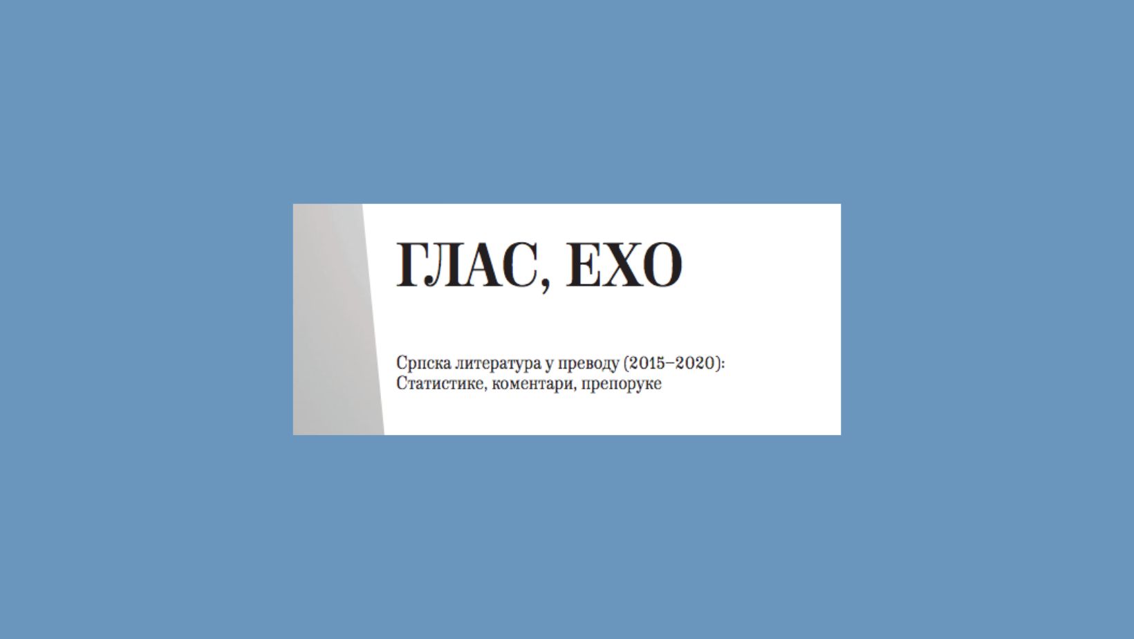 Zaključak studije Glas, eho, mogao bi biti da je srpska literatura u prevodu izložena borbi za vidljivost i prisustvo u prostoru većih kultura, te da je potrebno ulagati u sistem promocije i plasmana, što se ne može postići bez dobro osmišljene strategije koju bi realizovali kvalifikovani multidisciplinarni timovi.