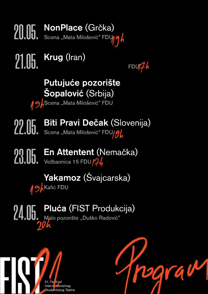 Ove godine FIST obeležava 20 godina postojanja, podsećajući da je kroz sve svoje oblike bio i ostaje utočište za nove glasove koji traže da se čuju. Realizaciju ovogodišnjeg festivala podržali su Ambasada Švajcarske u Beogradu i Goethe-Institut Srbija.