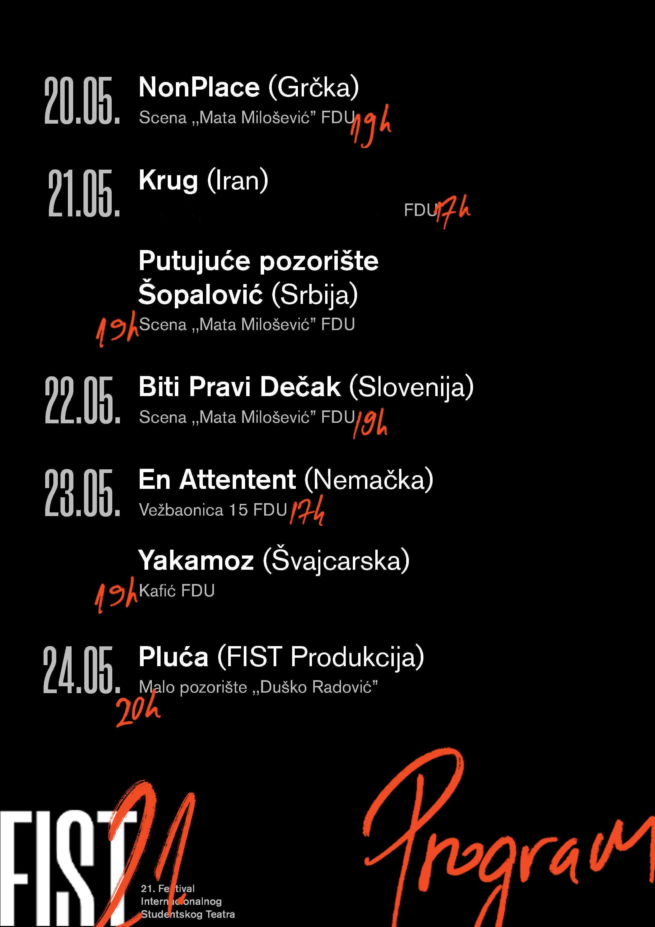 Od 20. do 24. maja, Fakultet dramskih umetnosti ponovo postaje prostor preispitivanja i zajedništva u kome će se održati 21. Festival Internacionalnog Studentskog Teatra (FIST) u organizaciji studenata.