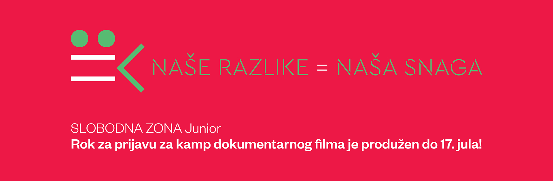 Konkurs za besplatne letnje kampove društveno – angažovanog dokumentarnog filma za mlade iz cele Srbije, produžen je do 17. jula! Filmski kampovi realizuju se kroz projekat Naše razlike su naša snaga u periodu od 9. do 23. avgusta na Divčibarama, a namenjeni su mladima od 15 od 26.