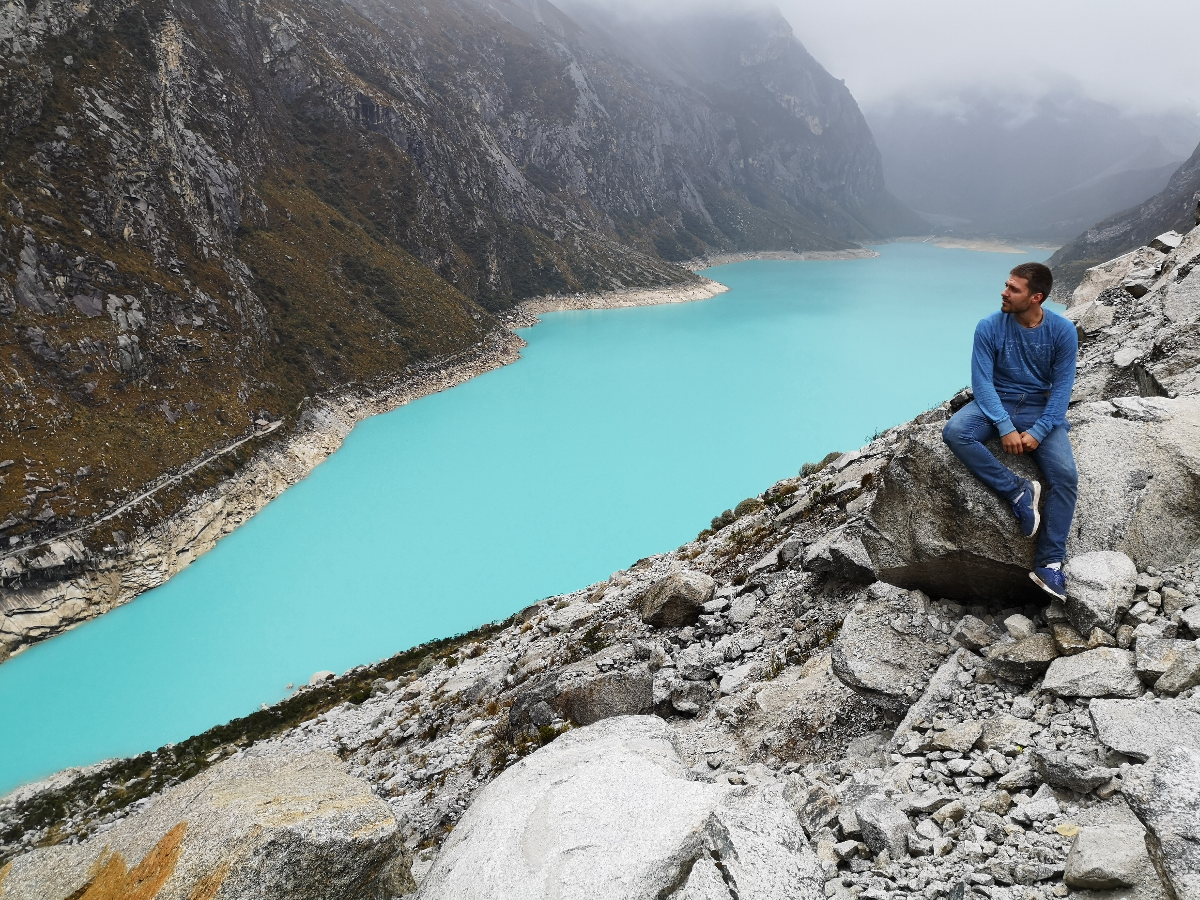 Još jedna prelepa noć u oazi od hostela slušajući razne priča lutalica po ovom delu svetu, lagan san i rano buđenje dovelo me je do najlepšeg izleta u Peruu. Laguna 69, i nije vezano za Kamasutru već za savršenu refleksiju. Slomiću vam srce i reći da je najmanji deo senzacije bilo jezero, a najveći put do njega. Počevši sa vožnjom autobusa gde iza sebe vidiš pogled kao iz kanjona gde vidiš druge planine koje su niže od tebe. Lagana voćnja od 30 na sat preko malog veštačkog mostića kroz plavo jezerce preko kojeg se savršeno oslikava sunce i želi ti dobrodošlicu. Autobus se parikirao uz nedođiju od puta gde smo kroz minijaturnu šumu od drveća visokog samo nekoliko metara izbili na preveliku dolinu koju pogled ne može da osvoji. Osećao sam se kao u Avataru samo što je ovo bilo realno. Najzelenija trava, zidovi od planina oko nas, potoci koji se nezavisno prostiru kroz pejzaž i krave koje pažljivo održavaju visinu trave. I pomnoži ovo sa sat vremena šetnje i dodaj konstantnu muziku udaljenih vodopada. Toliko da sam otupeo od lepote i deo sa teškom liticom mi je pomogao da razbije monotoniju. Na vrhu litice je bilo jezerce i još jedan sloj besprekorne doline koj niko ne može ništa da zameni. Jedna od scena koje neću zaboraviti je veliki kamen na sred doline na kome ponosno raste jedno prelepo drvo koje izgleda kao uvećan bonsai. Još sat vremena mešavine doline i uspona odjendom je pejzaž preuzelo golo kamenje najavljivajuići kraj. Plavi dragulj je zasijao na isteku vidokruga i zajedno sa 4 potpuno random osobe sam stao i delio zaprepašćenje. Sa poštovanjem smo prilazili i čuli vodopade kao se ulivaju u vodu. Bilo je to veliki ledeni planinski masiv koji je sa 3 mlaza vodopada konstantno dodavao prelepom azurnom jezeru još snage. Vetra maltene nije ni bilo te je jezero podržavalo naš odmor apsolutnim mirom. Kompozicija se razbijala povremenim zvukovima pucanja glečera. Od sreće nisam mogao da zamislim bolju stvar nego da odremam jednu turu. Bio sam u raju i nisam se osećao kao uljez.