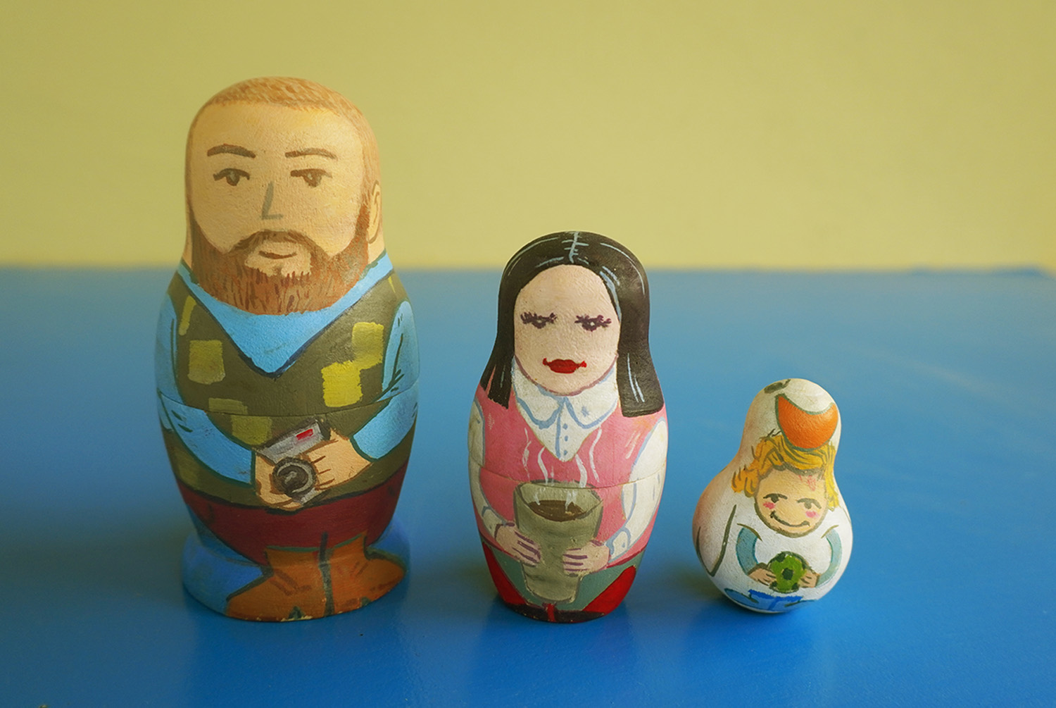 Da, skupljala sam ih u jednom periodu, jer sam naišla na neke koje su mi delovale jako posebno i retko, nisam znala da tigar može biti babuška (smeh). S druge strane, bilo mi je zanimljivo to rusko nasleđe, pogotovo književnost, onda su mi i babuške postale interesantne. Malo su mi i nostalgične, jer su ih članovi porodice iz Rusije dovlačili, pa mi imaju i tu porodičnu vrednost. Krenula sam spontano da skupljam, ali sam, isto kao i sa kasicama, brzo shvatila da ne mogu imati svaku babušku i da ne treba ni da je imam. Dosta sam ih i poklonila, a onda je i muž Nikola ošmirglao tri babuške i naslikao kao da smo na njima sin i nas dvoje (smeh).