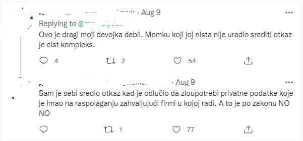 Čitava situacija pogodna je da se zapitamo da li smo dovoljno upoznati sa stvarima kao što su zloupotreba podataka, kršenje ugovora o radu, ko u svemu ovome ima jedini validan odgovor i rešenje, a pogotovo koliko se često dešavaju uznemiravanja ovakvog tipa, koja, izuzev ovoga, nebrojeno puta prolaze neopaženo i nekažnjeno i o kojima nikada nećemo saznati, osim o slučajevima gde je neko ipak reagovao. Šta je za svakog od nas uznemiravanje, nepoštovanje, kršenje zakona… stvari su koje u današnje doba ne treba biti relativne niti individualne, već kao društvo zajedno moramo raditi na tome da izgradimo kolektivni stav koji obuhvata sve ovakve i slične situacije i koji svako lice štiti od potencijalnog uznemiravanja, nasilja, iskorišćavanja i ugrožavanja.