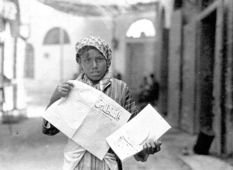Palestinska ulična prodavačica koja prodaje primerke novina Falastin u Jafi, Palestina, 1921.