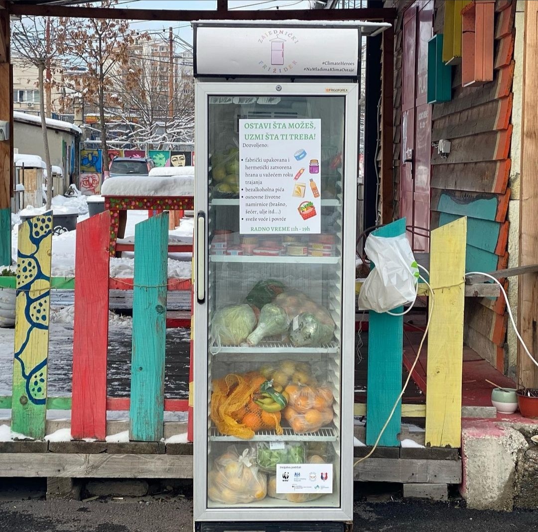 Zajednički frižider postavljen je juče u dvorištu Dorćol Platza u kom možete ostaviti višak hrane za ljude kojima je to najpotrebnije. Frižider će biti otvoren svakoga dana od 11 do 19 časova. Zajednički frižider je ekološka i humanitarna inicijativa koju su pokrenule dve mlade devojke Tamara Stojković i Emilija Bojić, a koja se zalaže za smanjenje otpada i borbu protiv gladi.